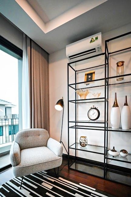 Securely attach the mounting bracket to the wall using appropriate screws and anchors, verifying its stability. Carefully lift the indoor unit onto the bracket, ensuring it locks into place correctly. Double-check all connections and fixings. Proper mounting minimizes vibration and noise, contributing to a quieter and more comfortable environment. Refer to the detailed diagrams within the full manual for precise bracket placement and screw specifications, ensuring a safe and effective installation process, much like instructional videos found online.